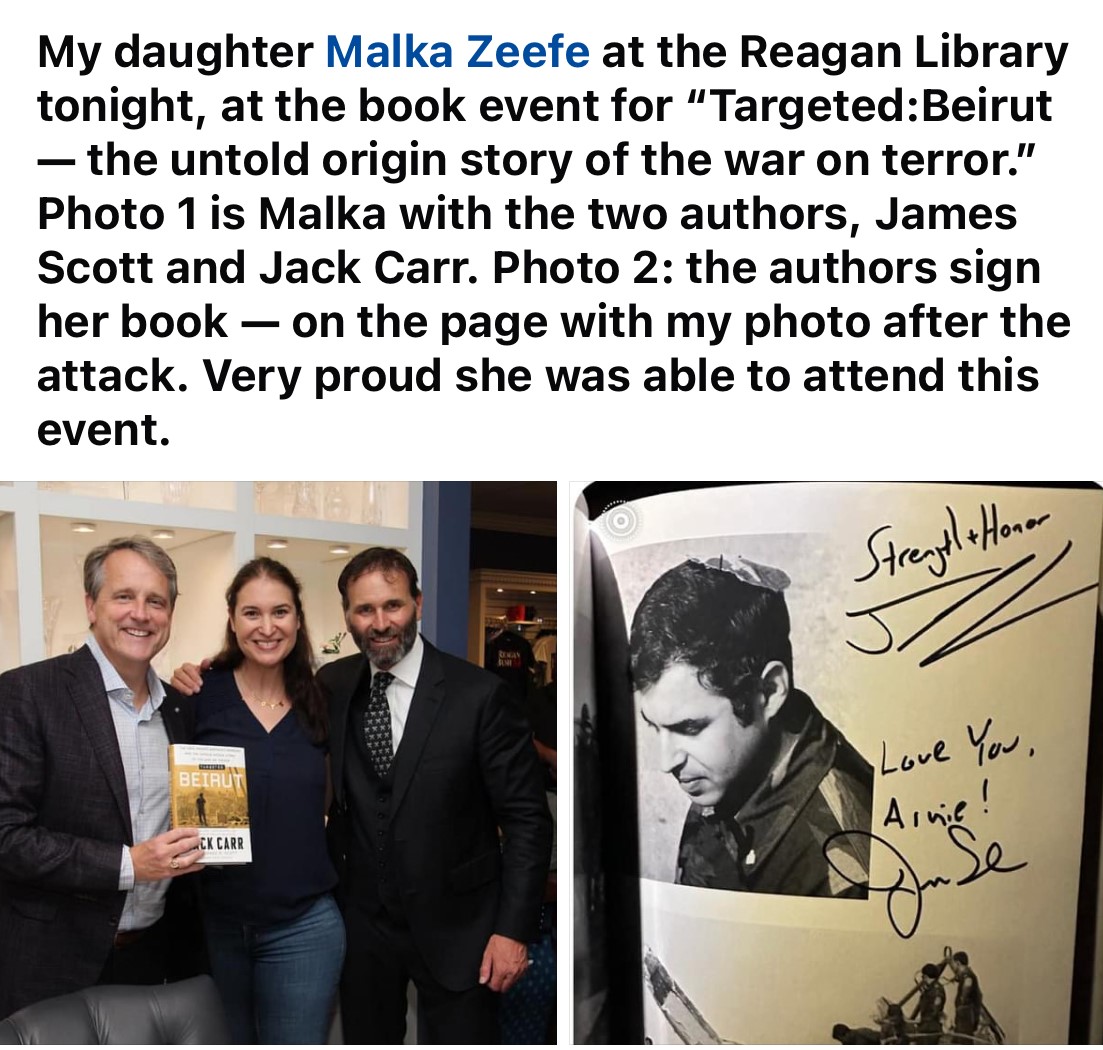 On September 24, 2024, bestselling author and former Seal Jack Carr, together with Pulitzer finalist James M. Scott, published a new book focused on the Beirut Bombings, TARGETED: BEIRUT.