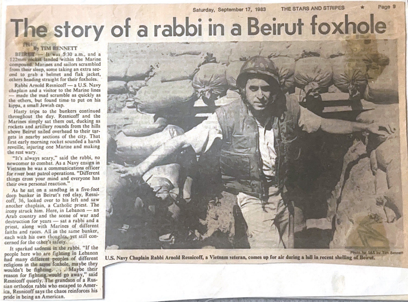 Rabbi Resnicoff was present in Beirut, Lebanon, on October 23, 1983, at the time of the suicide truck bomb attack.