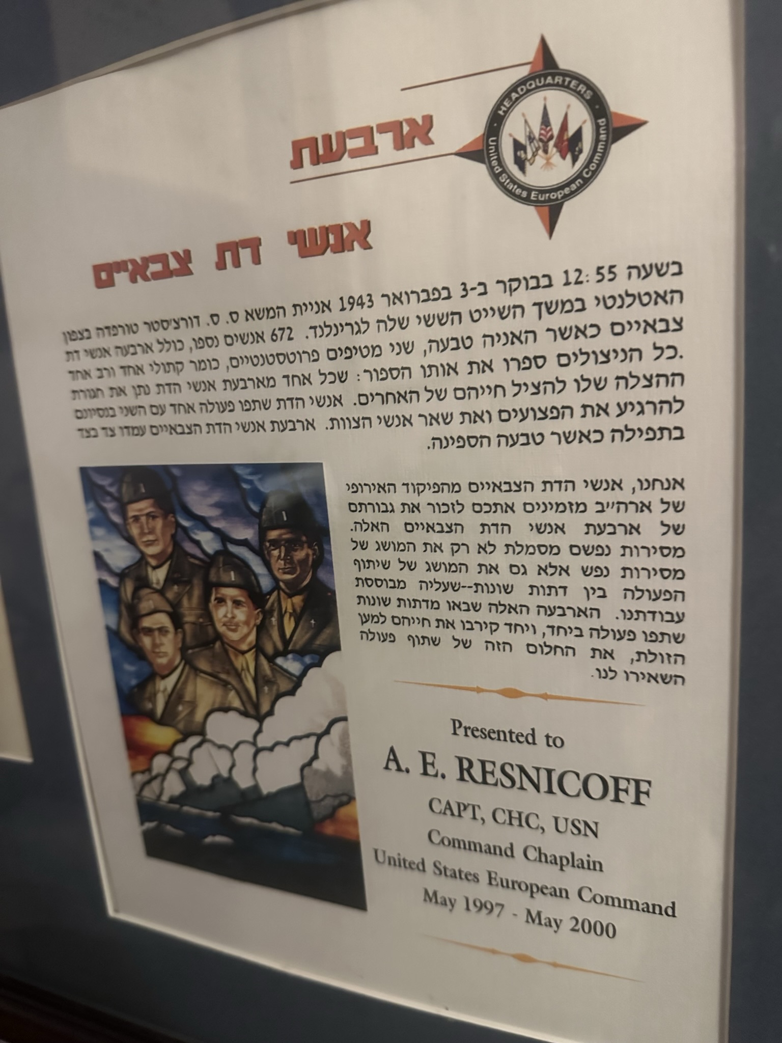 As Command Chaplain for the U.S. European Command (EUCOM), in 1998-99 Chaplain Resnicoff hosted and coordinated the first official visits for the Army, Navy, and Air Force Chiefs of Chaplains to Israel, one of the nations within the USEUCOM Area of Responsibility (AOR).