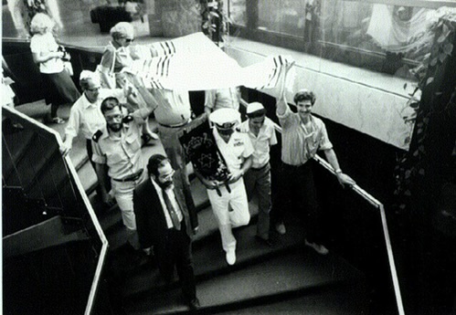 As the Assistant Sixth Fleet Chaplain, Rabbi Resnicoff led several visits to Israel. He often timed the ship’s approach to the port with a Jewish service onboard, in order to fly the Jewish worship pennant above the US flag (the one time any flag is permitted to take that position). In Israel, he became friends and collaborator with Gilla Gerzon — the “mother of the Sixth Fleet.” Rabbi Resnicoff and Sixth Fleet Public Affairs Officer Peter Litrenta recommended that a USO be established in Haifa, and that Gerzon be appointed its director. The country’s first USO was established in Haifa in December 1984, with Gerzon at its helm, and she remained in that position — establishing the Haifa USO as one of the most popular in the Mediterranean — until safety concerns forced it to close in September 2002. They also opened a US Navy lounge in Jerusalem’s beautiful Laromme Hotel.