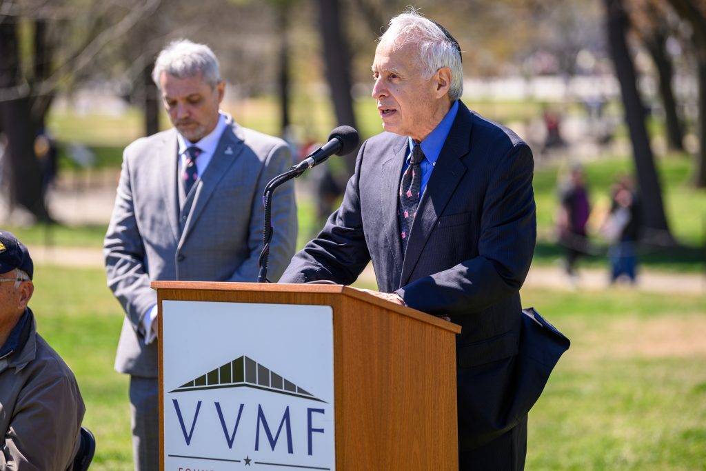 Years later, now a chaplain, Rabbi Resnicoff was part of the small group of Vietnam veterans, led by founder Jan Scruggs, that worked to create the Vietnam Veterans Memorial, in Washington, D.C. Scruggs was an Army corporal with the 199th Light Infantry Brigade who had been wounded on the battlefield in Vietnam. On November 13, 1982, Rabbi Resnicoff delivered the closing prayer at the official dedication of “The Wall.” Even before its dedication, Rabbi Resnicoff actually gave the prayer at two small foundational ceremonies: one to commemorate the fact that Congress had agreed to let the memorial be built at that site, and one at the groundbreaking ceremony. Much later, he repeated the same prayer at the memorial’s 20th anniversary ceremony in 2002 and 25th in 2007; in 2022, Rabbi Resnicoff opened the 40th anniversary ceremony with a prayer. Rabbi Resnicoff also delivered the prayer at Memorial Day ceremonies at the Wall in 2018, 2020, and 2021. He has been referred to as “the Wall’s rabbi” because of his many prayers for ceremonies there. His original 1982 prayer is included in “The Treasury of American Prayers,” published in 2008 by Doubleday.